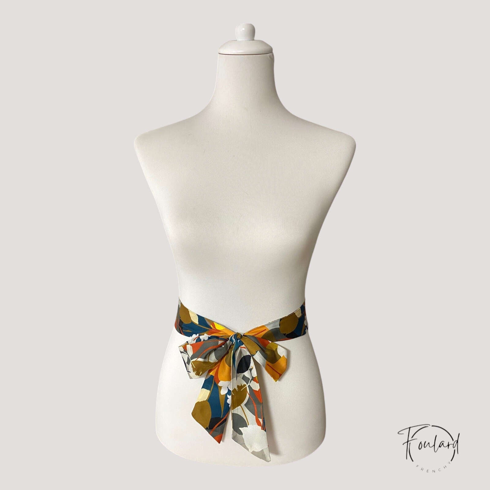 Polyvalente, elle se noue autour de la taille sur une robe ou un pantalon taille haute, mais peut également s’utiliser comme bandeau dans les cheveux, foulard de sac, ou en nœud autour du cou pour une touche féminine délicate. Idéale pour composer un look bohème chic, romantique vintage ou même urbain sophistiqué, cette ceinture foulard s'adapte à tous les styles.