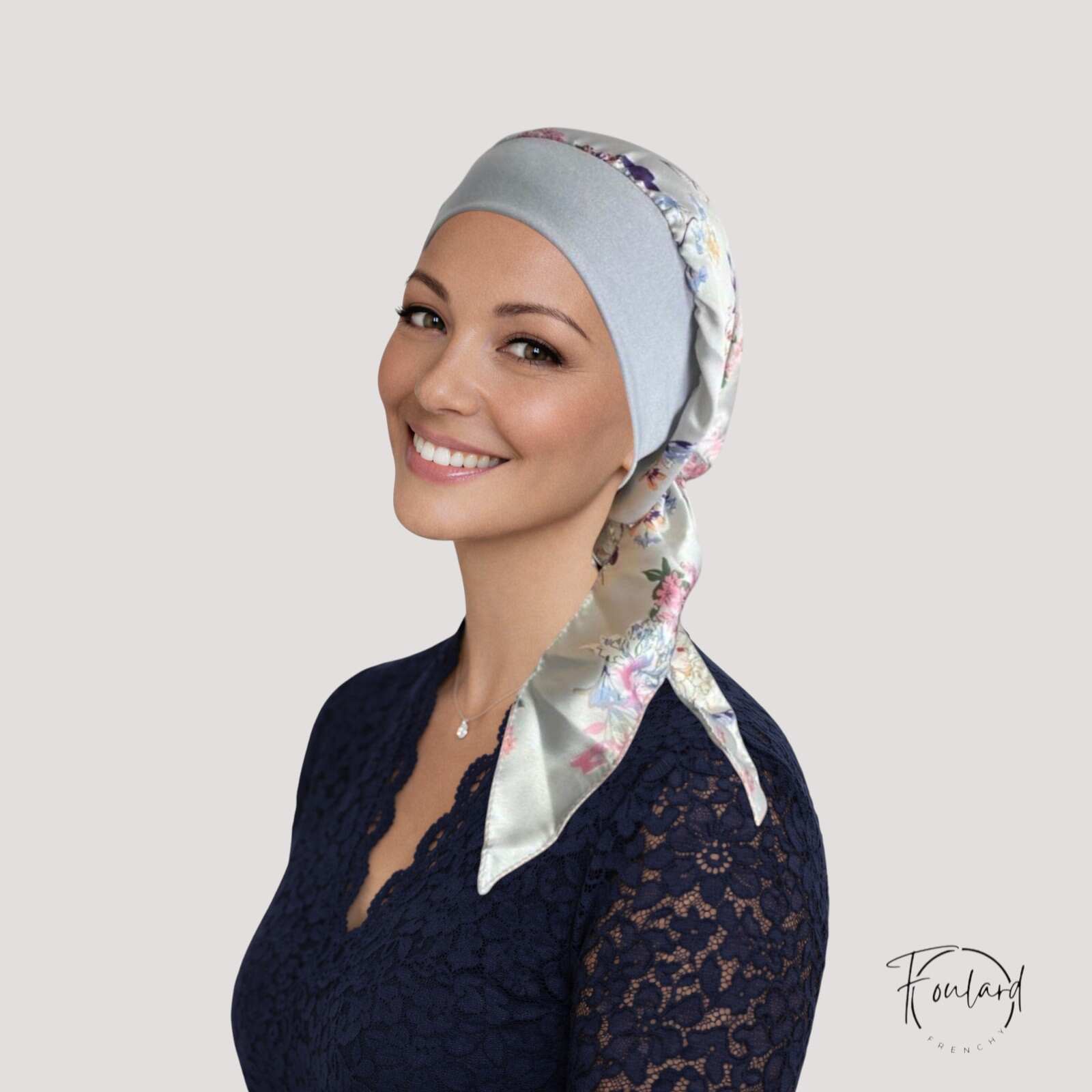 Le joli et élégant Foulard Cheveux Femme Moderne Chimio Gris à motifs JUDITH est le complément parfait pour votre look. Il est accessible avec son bandeau et ses couleurs vives et variées. Fabriqué avec un matériau doux qui garantit une tenue parfaite, ce foulard est idéal pour les journées de chimio ou pour compléter un look. La livraison est offerte.